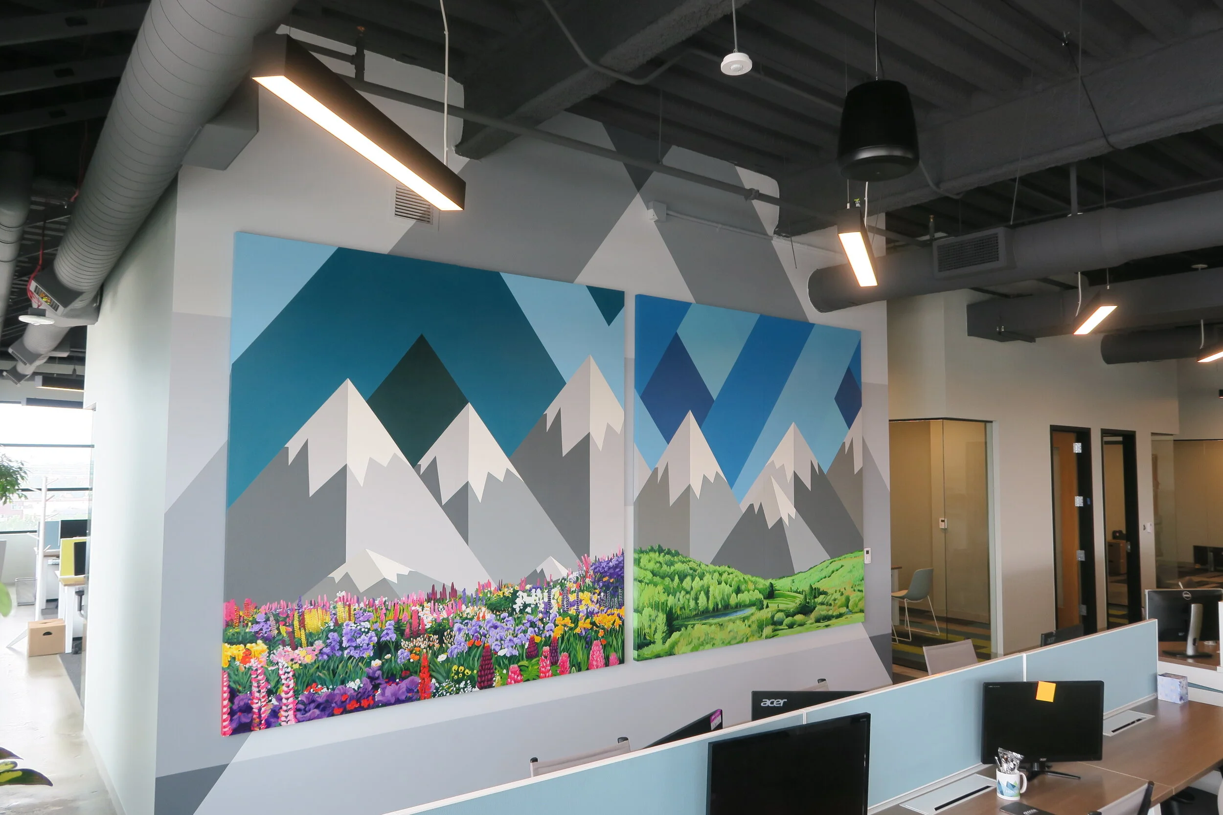 I truly believe art has the ability to completely transform the energy and vibe to a space, whether it be a business, office, home or restaurant. Approaching these interior projects, I work closely with the business owner or homeowner to visually interpret their desired color palette and subject matter. I pride myself on creating vibrant and inviting pieces of art that are timeless and bring a welcoming energy to any space.
